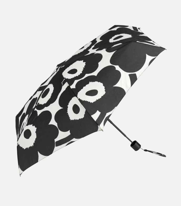 This ultra light umbrella is small enough to fit in any purse. The umbrella is decorated with the Unikko pattern, it has a manual telescopic shaft.